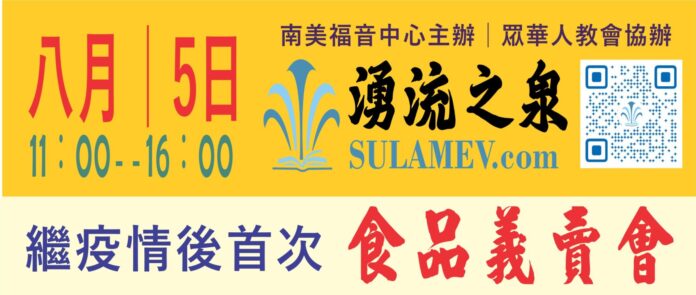 義賣會由眾華人教會協辦,經幾個月籌備,即將於8月5日(周六)上午11點~下午4點,在天僑教會(Rua Fagundes 173 – Liberdade)舉行。