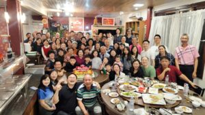 晚上,全体会友于巴西福气餐厅举行爱宴,在丰盛的美食与温馨的气氛中彼此拥抱、互道祝福。每一张笑脸、每一声感谢,诉说著桥头教会四十年的脚踪:从一间借来的聚会场所,到今日的荣耀事奉。