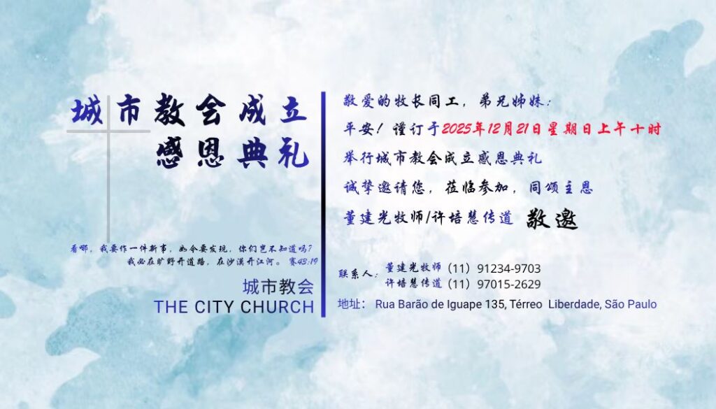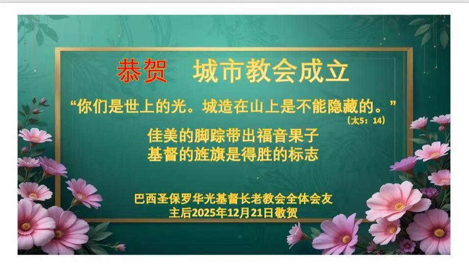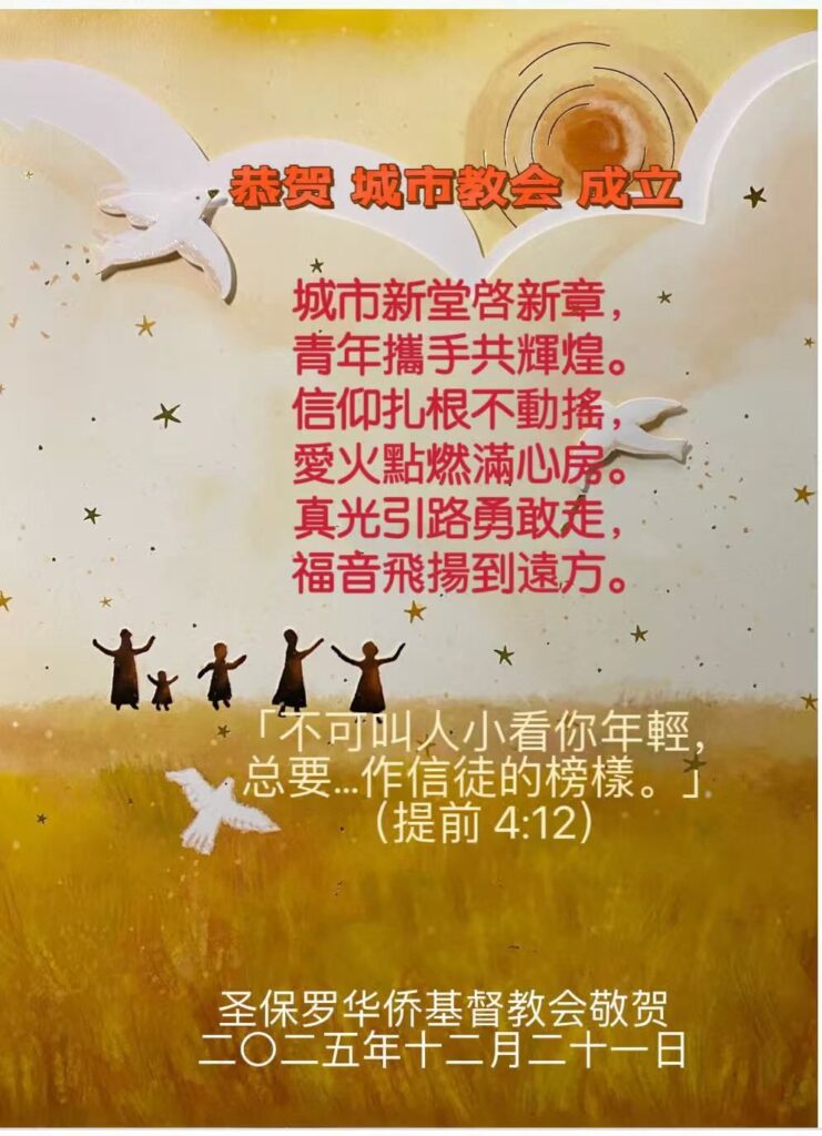 敬贺城市教会成立!愿主掌权带领董建光牧师和许培慧传道的服事,使用城市教会作为主熠熠发光的金灯台!(游修河傳道賀)