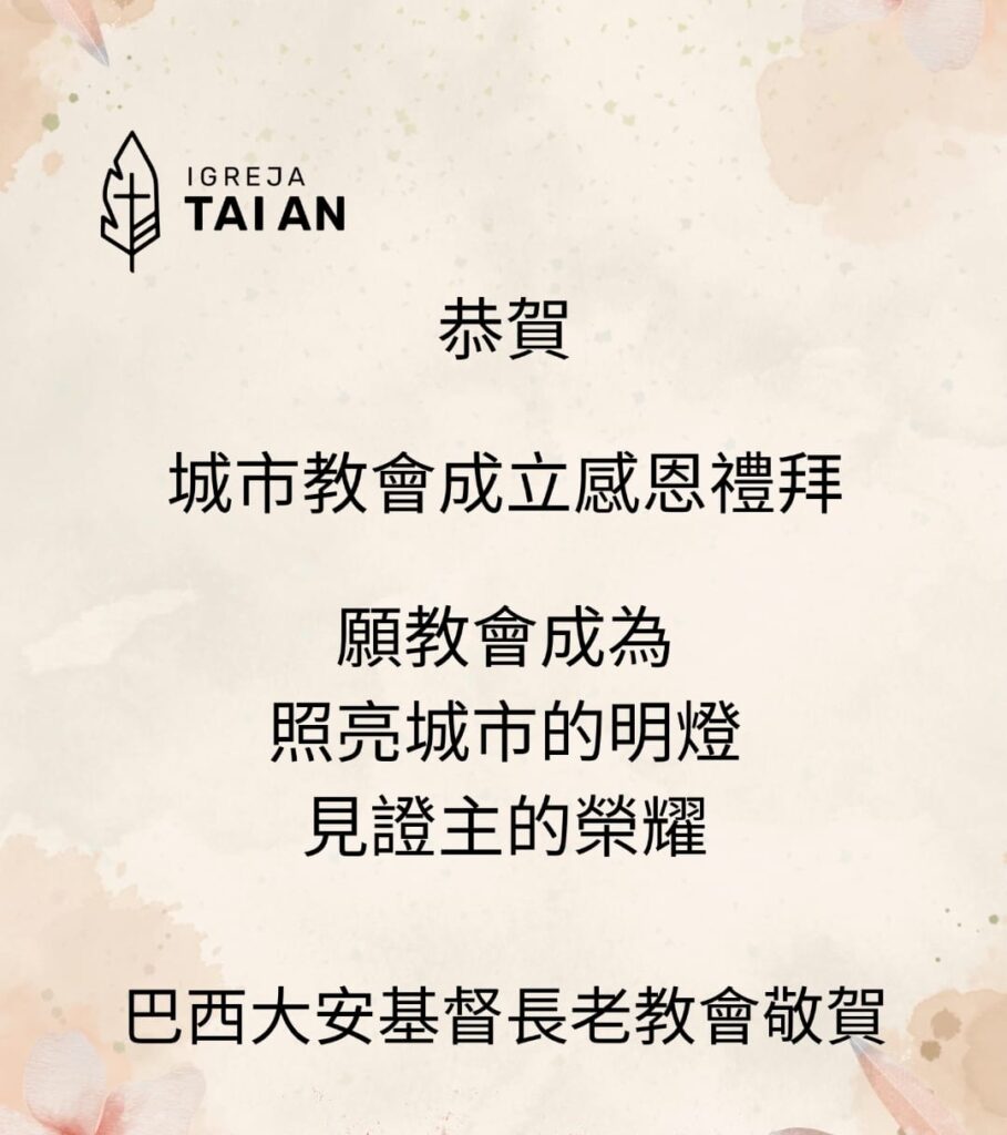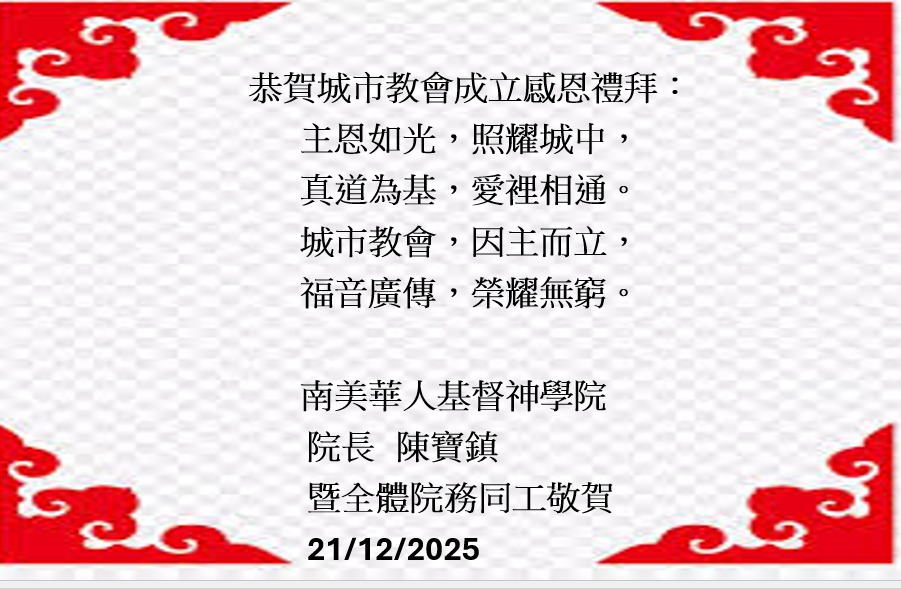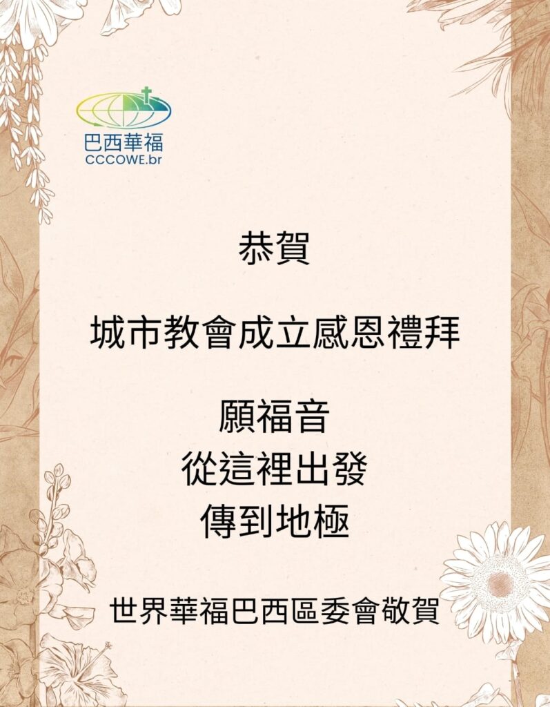 謹敬賀城市教會成立之喜!