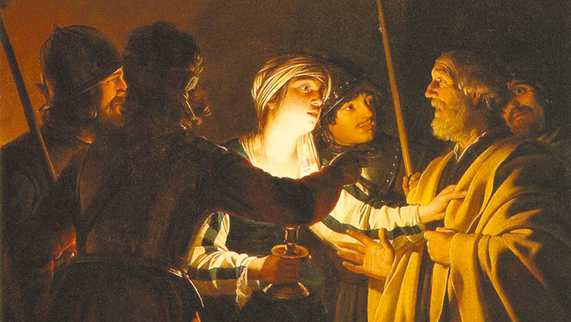 然而,彼得終究是跌倒了,而且三次不認主。當耶穌在大祭司的宅裡準備受審,轉過頭看彼得時,他才猛然驚覺,原來他的信仰基礎是這麼地薄弱,他的勇氣是這麼地不堪一擊。我們的信仰生命中隱藏著彼得的軟弱嗎?或許我們都要和我們的軟弱與懼怕直球對決,原來,我們並不是我們自己以為的那樣剛強、有信心。